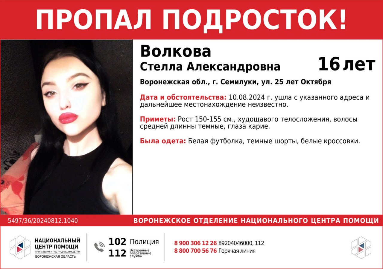 В городе Семилуки внезапно пропала 16-летняя девушка. Об этом рассказали в пресс-службе воронежского отделения национального центра помощи.
