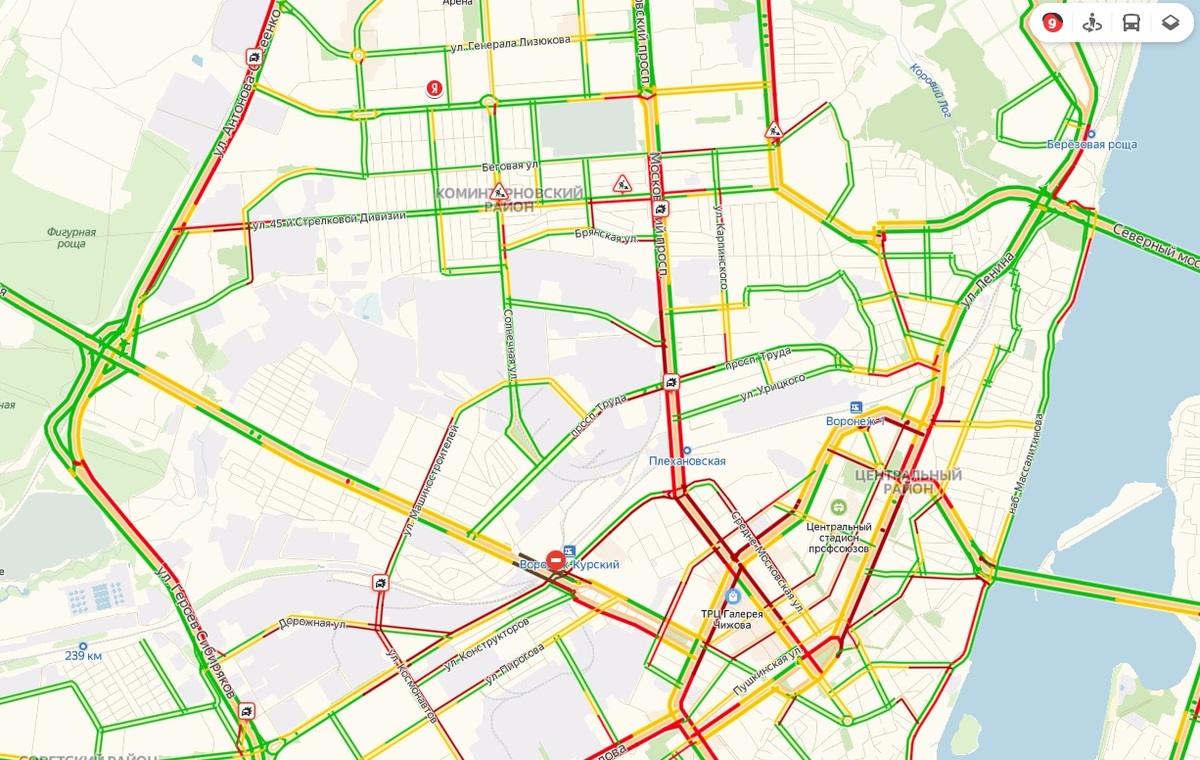 Вечером 30 октября воронежцы вспомнили, что такое девятибалльные пробки. Именно такую оценку заторам дал сервис «Яндекс.Карты». Автомобилисты намертво встали в центре города — на улицах Плехановская, Кольцовская, проспекте Революции и прилегающих к ним более мелких транспортных артериях.