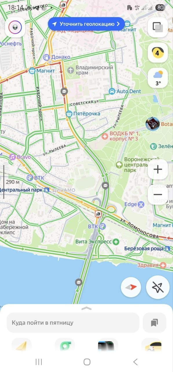 Их слова подтверждаются данными сервиса «Яндекс. Карты». Как видно на карте, «покраснела» дорога рядом с Владимирским храмом.