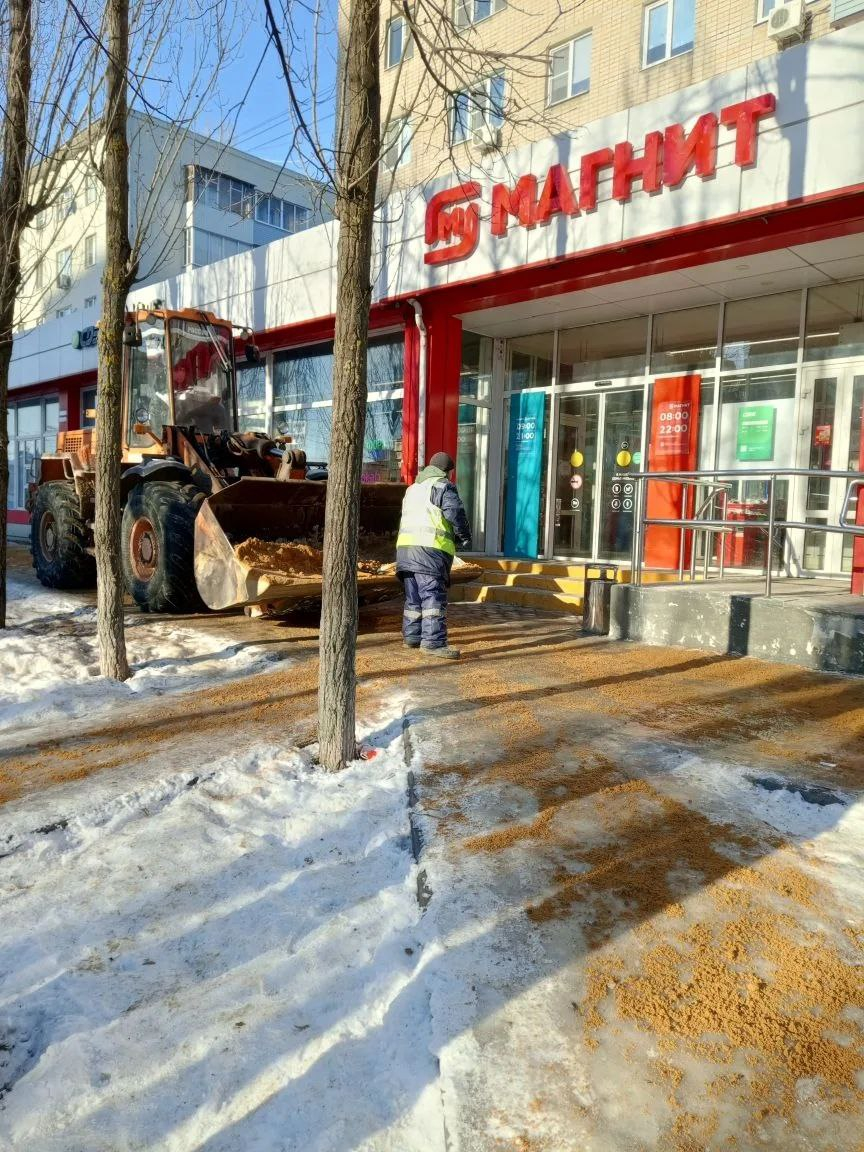 «Видим сигнал от горожан о скользком участке на проспекте Патриотов. Наши специалисты оперативно приступили к уборке льда и обработке тротуара песко-соляной смесью», – комментирует управа.