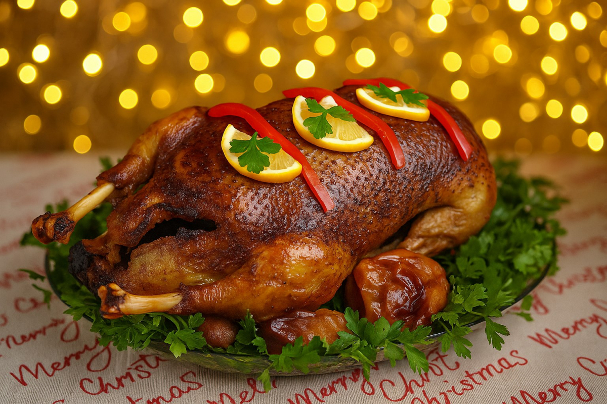 Сегодня мы предлагаем вам приготовить не легкую закуску, а полноценное блюдо, а что еще важнее – любимое новогоднее блюдо главы нашего города Сергея Петрина - запеченный гусь.