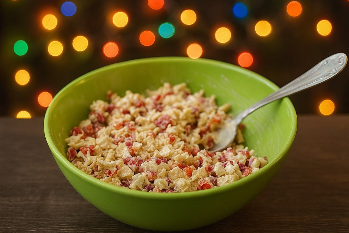 В глубокой миске соедините нарезанную курицу и сладкий перец. Добавьте примерно половину всего майонеза и соль по вашему вкусу. Тщательно всё перемешайте до однородности. Эта смесь станет основой нашего салата.