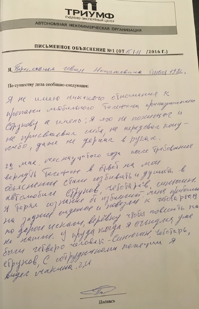 Одно из них - письменное объяснение - содержало следующую информацию (орфография сохранена):