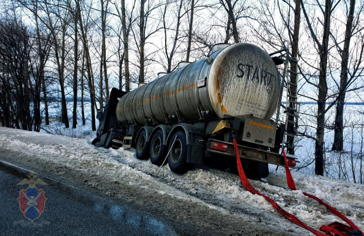 Фура съехала в сугроб, но её выдернули обратно: как воронежские гаишники спасали большегруз