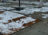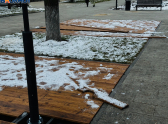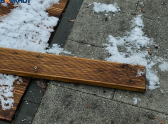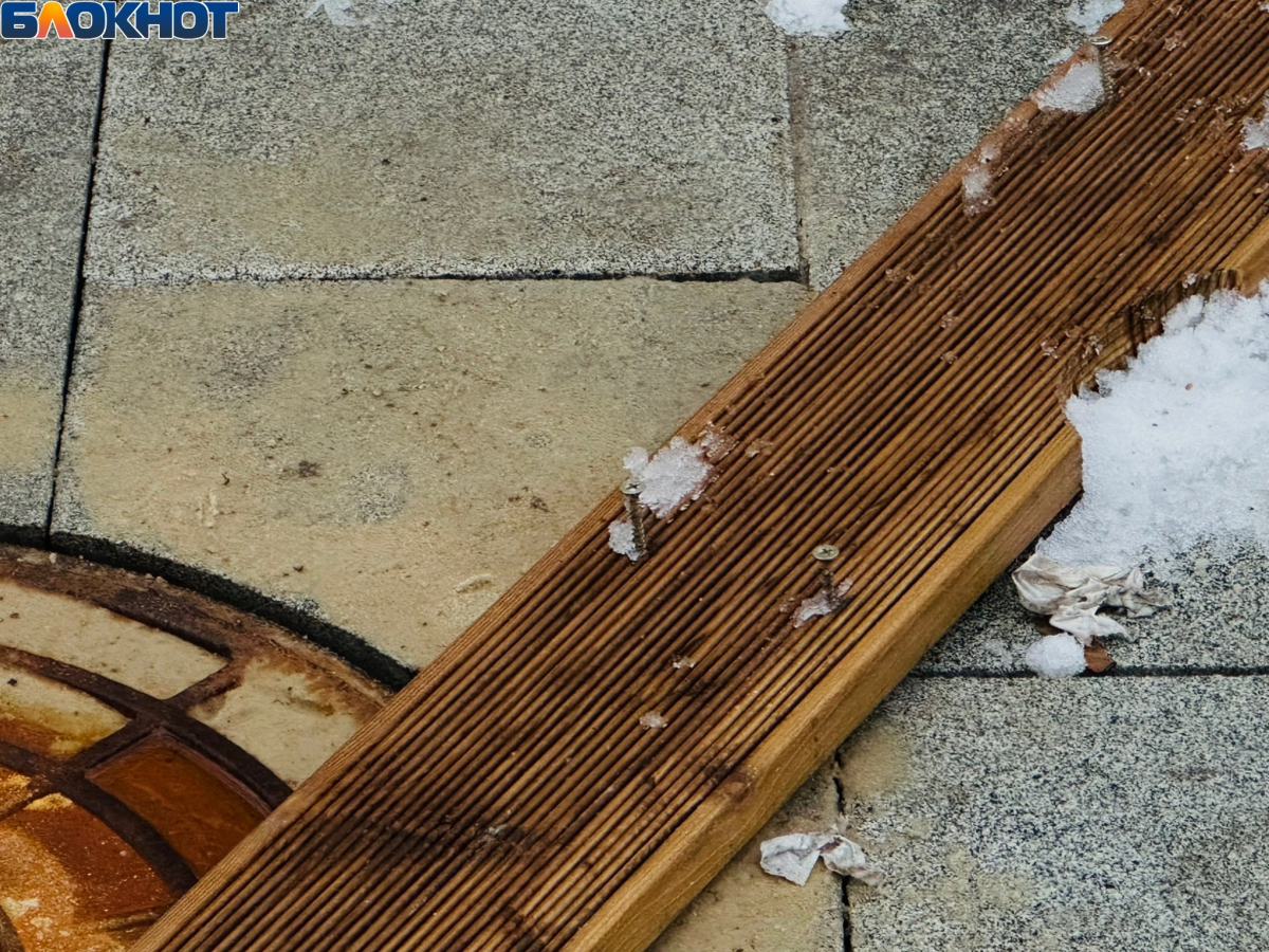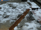 Однако сам процесс вызывает обеспокоенность. Вынутые деревянные доски с вкрученными в них саморезами сложены прямо в зоне прохода. Металлические саморезы торчат из досок вверх, что создаёт опасность для случайного прохожего, особенно в тёмное время суток.