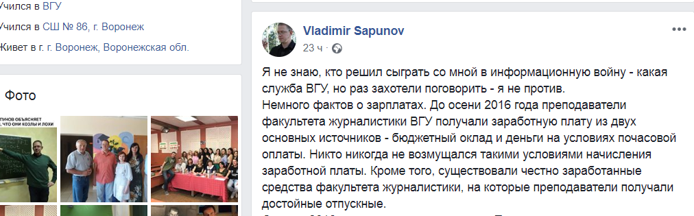 Владимир Сапунов в долгу не остался и в тот же день на своей странице в Facebook раскрыл лукавство ректората ВГУ.