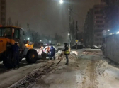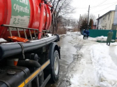 Работа комбинатов продолжается и днем. Коммунальные службы сгребают и вывозят снег, очищают решетки ливневых канализаций, специальная водооткачивающая техника помогает быстрее устранять подтопления.