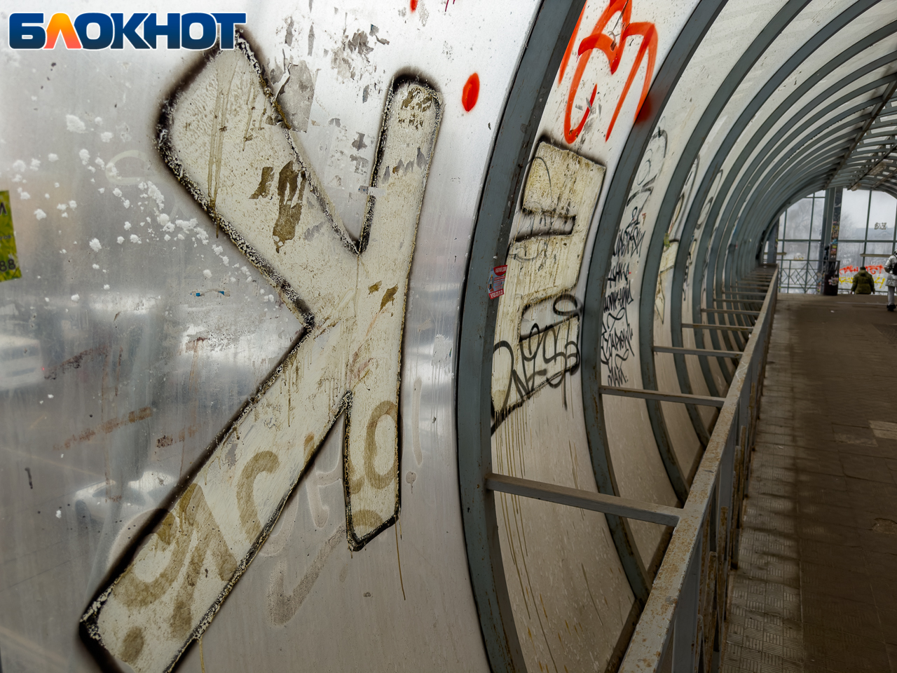 Кто бывал там, тот знает, все "прелести" надземки: металлические перекрытия объекта поржавели, все кишит граффити, объявлениями и грязью, ну и куда же без зловонного запаха, от которого многие воронежцы просто закрывают нос, чтобы перейти на другую сторону дороги.