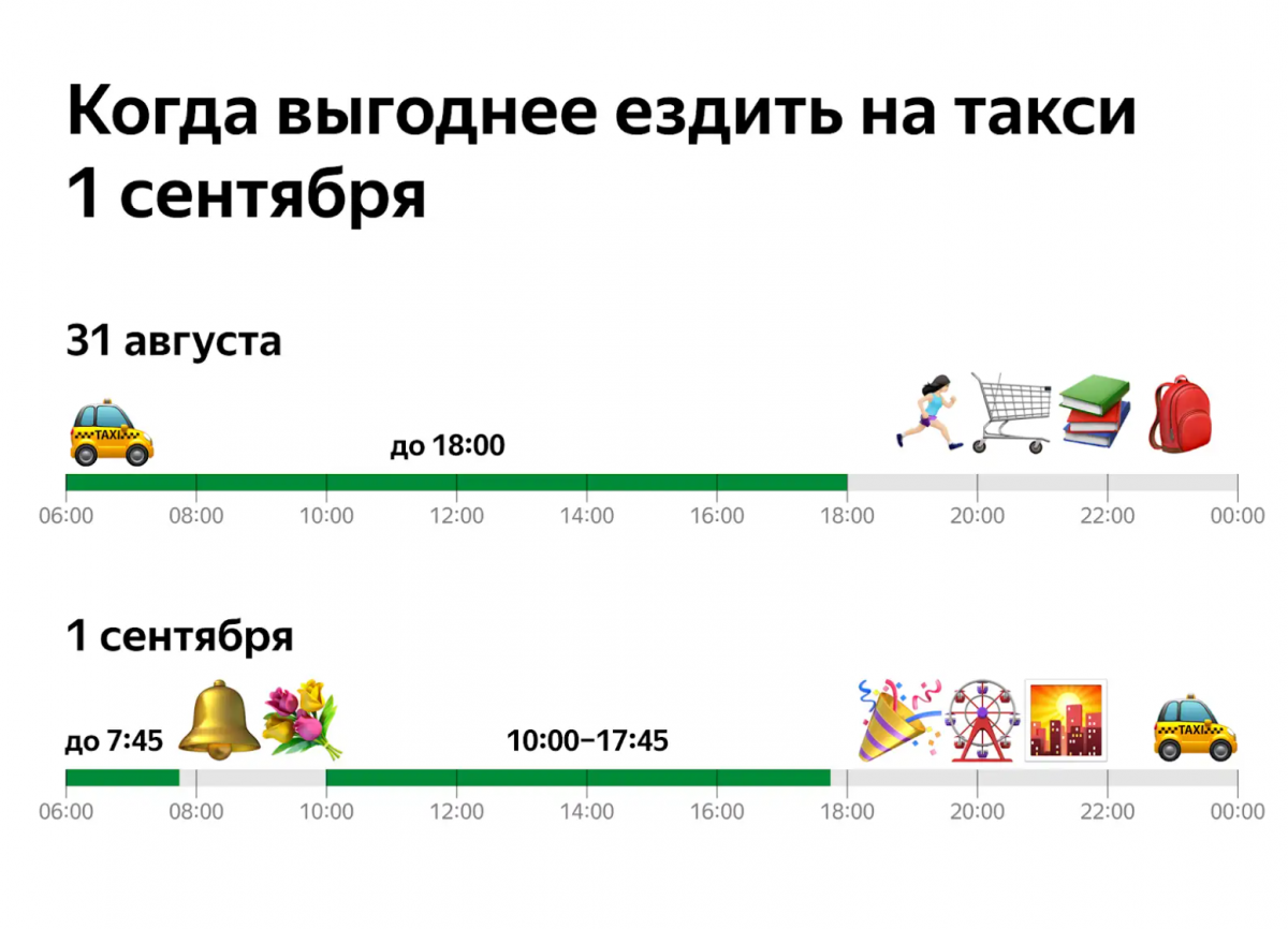 Сервис «Яндекс Go» дал совет, как спланировать поездку на линейку 1 сентября и сэкономить при этом. Аналитики компании отмечают, что в первый день осени спрос на заказы такси с детскими удерживающими устройствами вырастет на 20-25%.