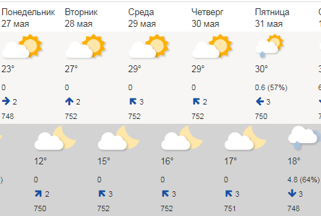 Во вторник, 28 мая, город останется без осадков, но небо заволокут облака. Столбик термометра днем поднимется до +27, ночью опуститься до +15. В среду станет жарче на пару градусов, дождя, по прогнозам синоптиков, не ожидается.