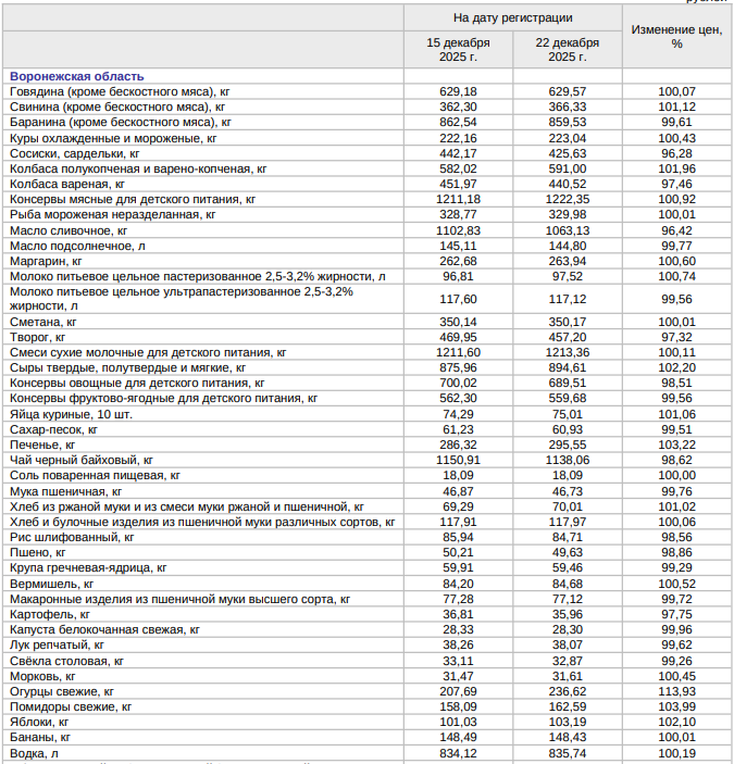 Ранее обеспокоенный декабрьским ростом стоимости продуктов вице-спикер Государственной Думы от ЛДПР и уроженец Воронежа Борис Чернышов предлагал вести мораторий на повышение цен. Депутат говорил, что праздник не должен становиться серьезным испытанием для кошелька россиян.
