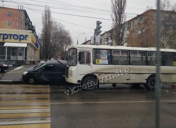Маршрутка уничтожила легковушку на перекрестке в Воронеже