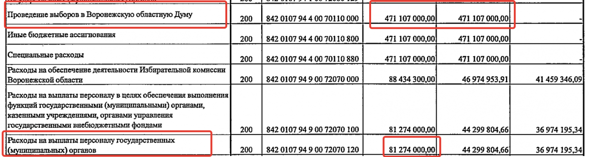 скриншот из постановления облправительства об исполнении бюджета за 1 полугодие 2026 года, все деньги - 471 млн рублей - на выборы в облдуму были выделены еще до 1 июля, то есть, за 2,5 месяца до голосования. Условно говоря, стоимость процедуры избрания всего одного депутата регионального парламента обошлась казне в 8,4 млн рублей.
