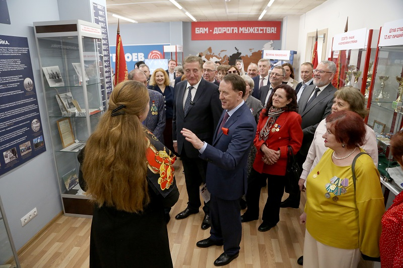 Идея создания объекта принадлежит Алексею Гордееву, который трудился в составе студенческих отрядов на Байкало-Амурской магистрали, он также открыл экспозицию, куда вошли около 200 экспонатов: архивные документы, личные вещи строителей, фотографии, награды первопроходцев магистрали, давшей весомый толчок развитию экономики страны и многим ее отраслям.