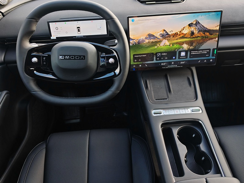 OMODA C7 не только красив снаружи, но и предлагает современную «начинку». В салоне доминируют два объединенных экрана, один для приборной панели, а второй – для информационно-развлекательной системы. Здесь можно найти все необходимые функции: навигацию, мультимедиа, управление климатом и многое другое. Голосовое управление, беспроводная зарядка для смартфона, системы помощи водителю (ADAS) – все это делает управление автомобилем комфортным и безопасным.