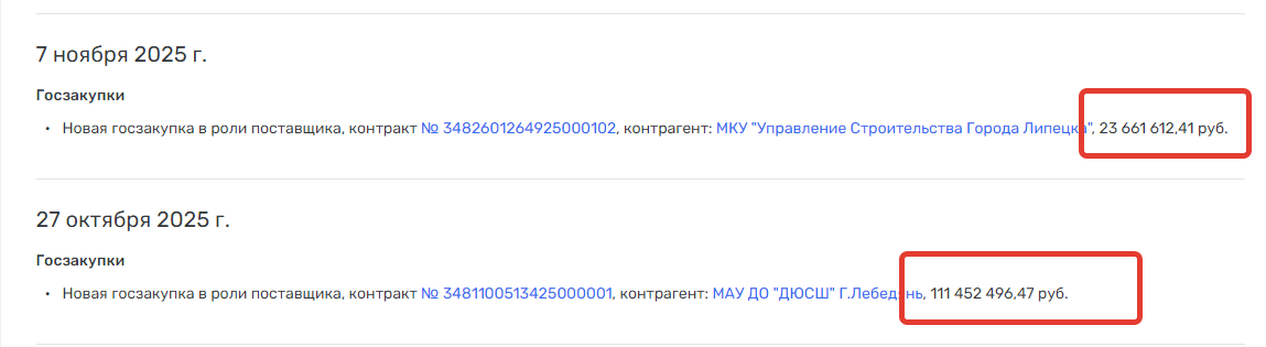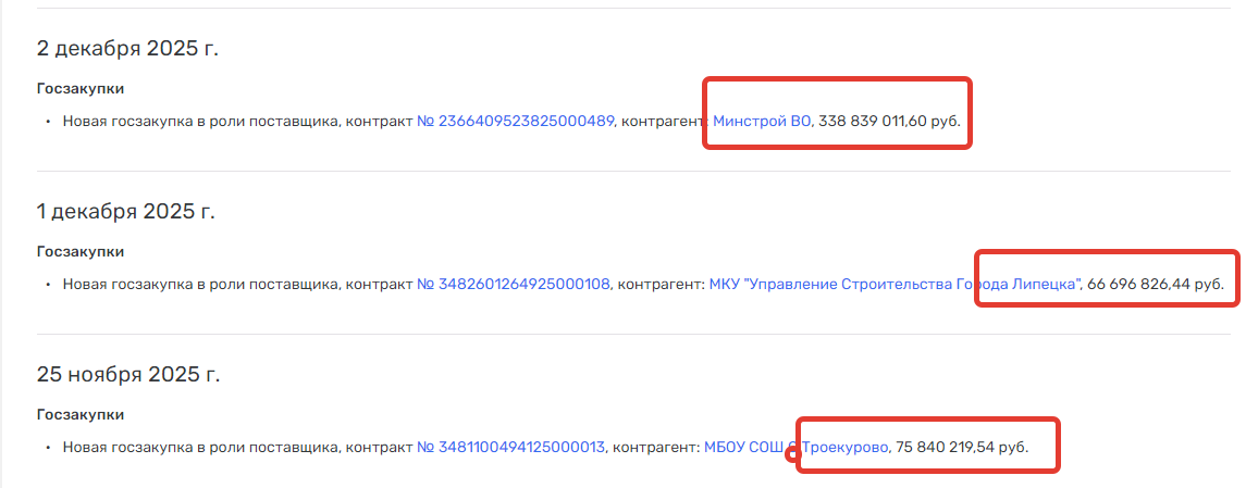 данные из открытых источников, контракты, которые подписало ООО «Спецстрой» (номер ИНН 3662149086) , с октября по декабрь 2025 года.