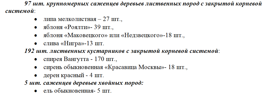 В техническом задании к закупке опубликован следующий список растений, которые должны быть приобретены и посажены на одной из улиц центра Воронежа.