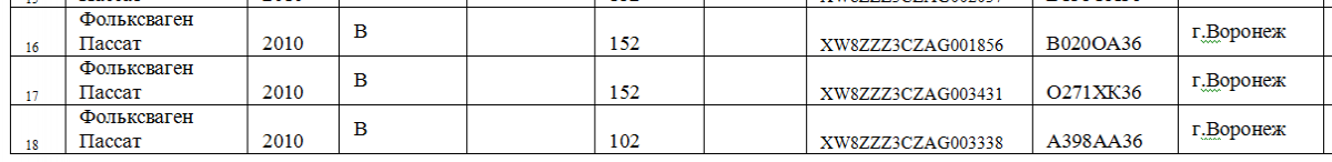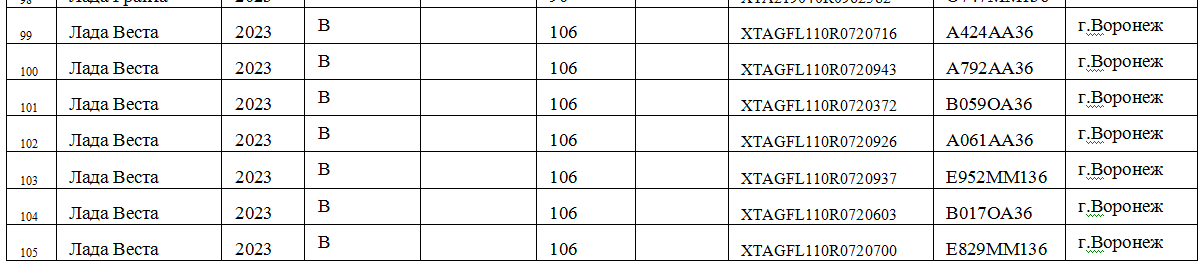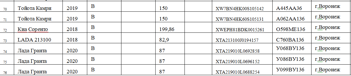 Общий список служебной автотехники мэрии Воронежа в документации выглядит так: