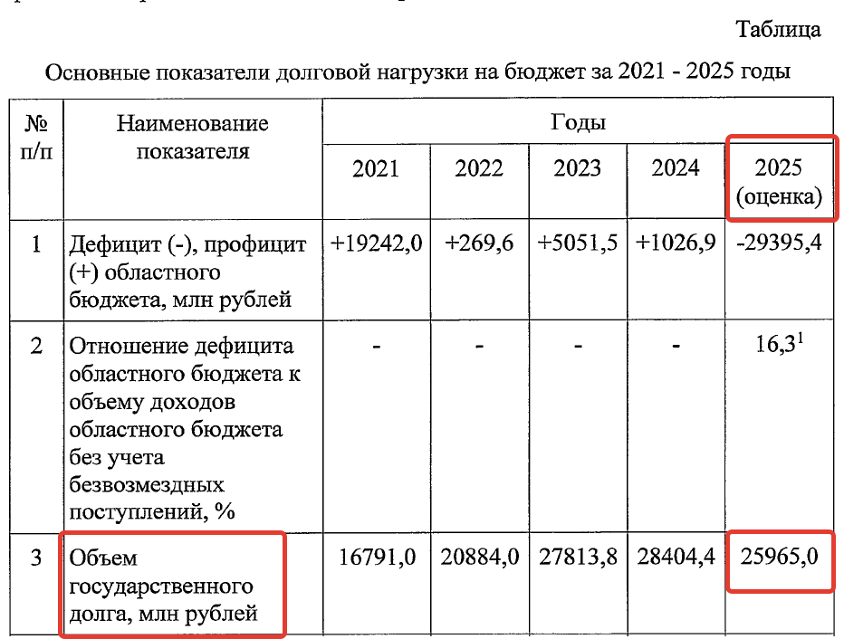 А вот прошлогоднее сокращение размера госдолга объясняется списанием задолженности по бюджетным кредитам на сумму 2,6 млрд рублей в связи с распоряжением правительства РФ от июля 2025 года.