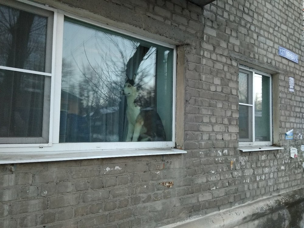 Сегодня, 25 марта, в доме №127 по улице 9 января воронежцы увидели грустную собаку. Животное сидело на подоконнике в квартире первого этажа. Собака породы хаски с тоской смотрела на улицу.