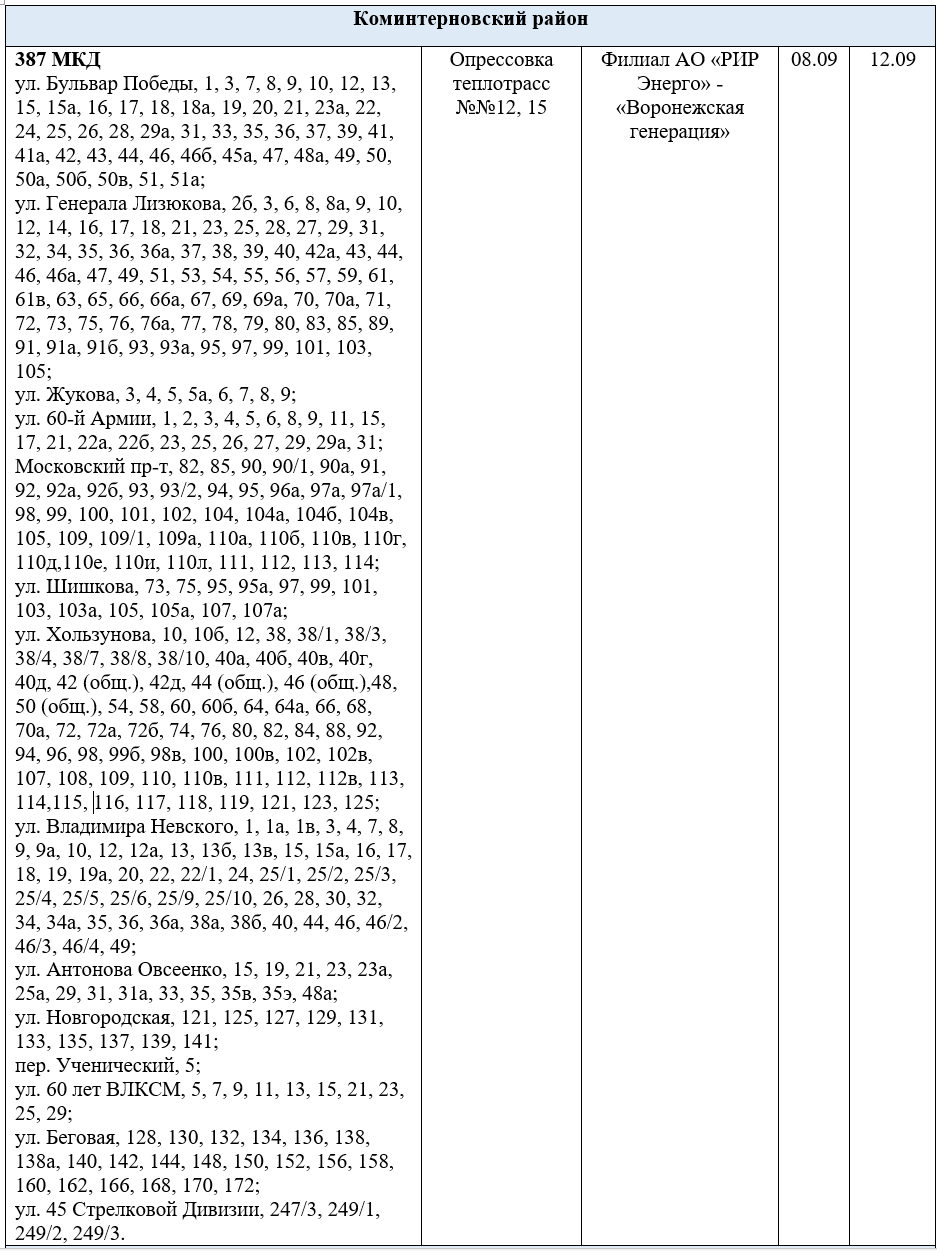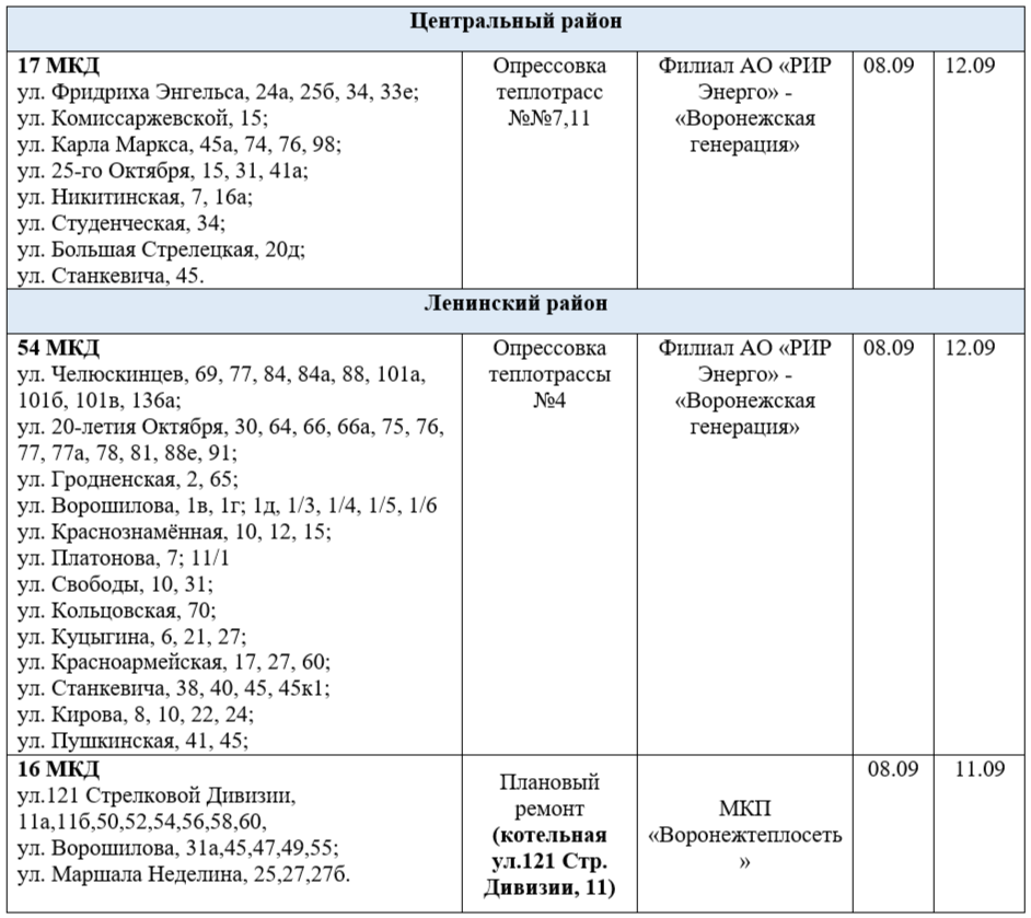 Осенью в Воронеже продолжится подготовка теплоэнергетического хозяйства к предстоящему отопительному сезону 2025 -2026 гг. Ранее были опубликованы адреса домов, где в сентябре отключат горячую воду (на 1-5 суток). Тогда было сказано, что ограничения затронут только правый берег – Коминтерновский, Ленинский, Советский и Центральный районы. Связаны они с необходимостью проведения повторных гидравлических испытаний.