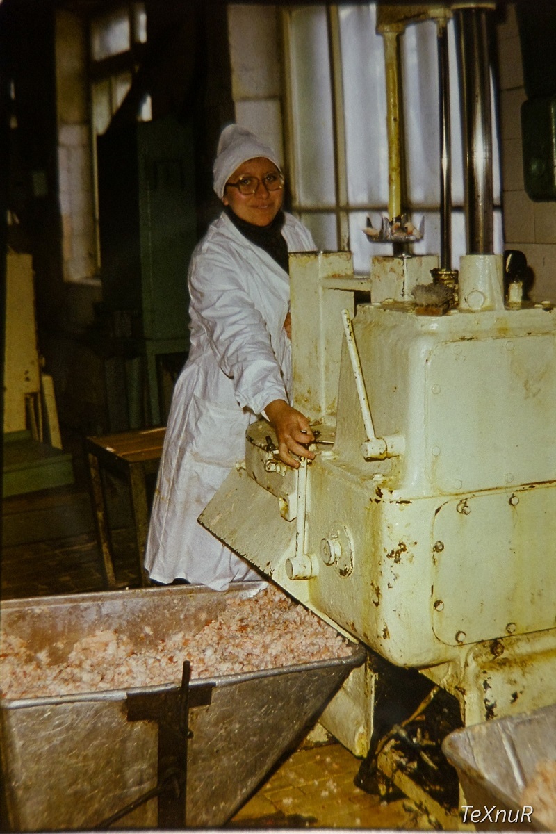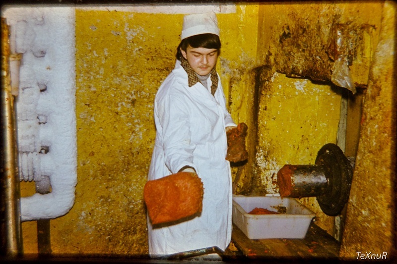 - Мне казалось кроме гаражей и складов там ничего нет. Думал, что на территории мясокомбината должно быть убежище, посмотрел по списку и не нашел там никаких упоминаний о нем. Когда я ходил по зданиям, то немного удивился, обнаружив здесь собственное ПТУ, большая часть комнат которого была пуста. Но в одной валялся весь учебный материал: устройство станков и агрегатов, макеты разных частей животных, колбас, множество разных плакатов, книг и фильмов. Мое внимание привлекла коробка, где хранились слайды. Несколько штук просветил фонарем и понял, что это старые фотографии рабочего процесса на мясокомбинате. Они меня заинтересовали, и я взял их с собой. А добравшись до дома, оцифровал их и выложил в Сеть, - рассказал Texnur Sleepless.