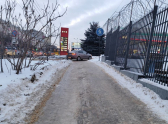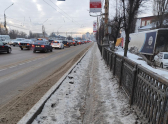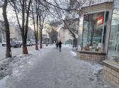 Первый островок безопасности на пути обнаружился у частников – пешеходную зону возле своего здания расчистила стоматология. Впрочем, может это и городские коммунальщики, врать не будем, информации нет. Но сразу после стоматологии чистая зона заканчивается.