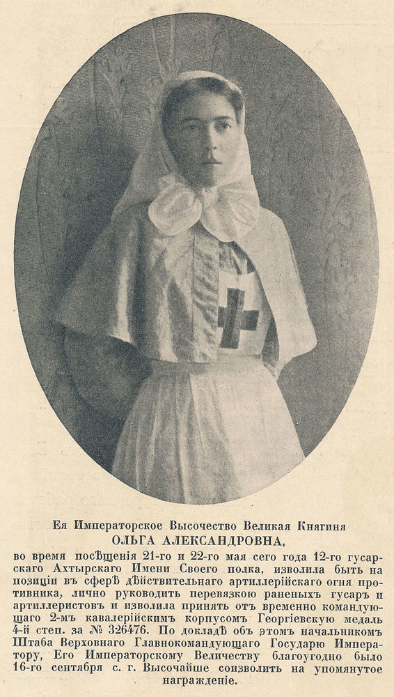 – Великая княгиня Ольга Александровна среди всех особ императорской фамилии отличалась необыкновенной простотой, доступностью, демократичностью, – писал о ней Протопресвитер Георгий Шавельский. – В своем имении Воронежской губернии она совсем опращивалась: ходила по деревенским избам, няньчила крестьянских детей и пр. В Петербурге она часто ходила пешком, ездила на простых извозчиках, причем очень любила беседовать с последними.