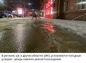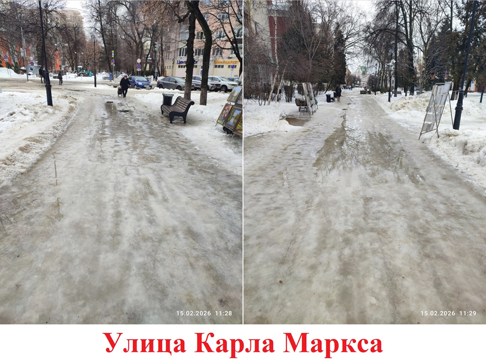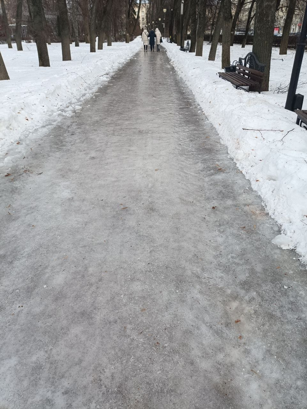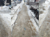 В воскресенье я был в центре города. Из-за того, что тротуары не чистили дочерна всю зиму, после дождя и потепления они превратились в каток.