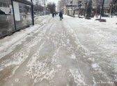 Вчера решил снова сходить на место, где упал. То, что предстало моему взору, не поддается описанию цензурным языком. Осадки закончились позавчера, а тротуар и остановка в самом центре города на одной из главных улиц, недалеко от площади Ленина и областного правительства, полностью во льду, даже песком не посыпаны. Сколько тут народу уже упало, страшно даже подумать.