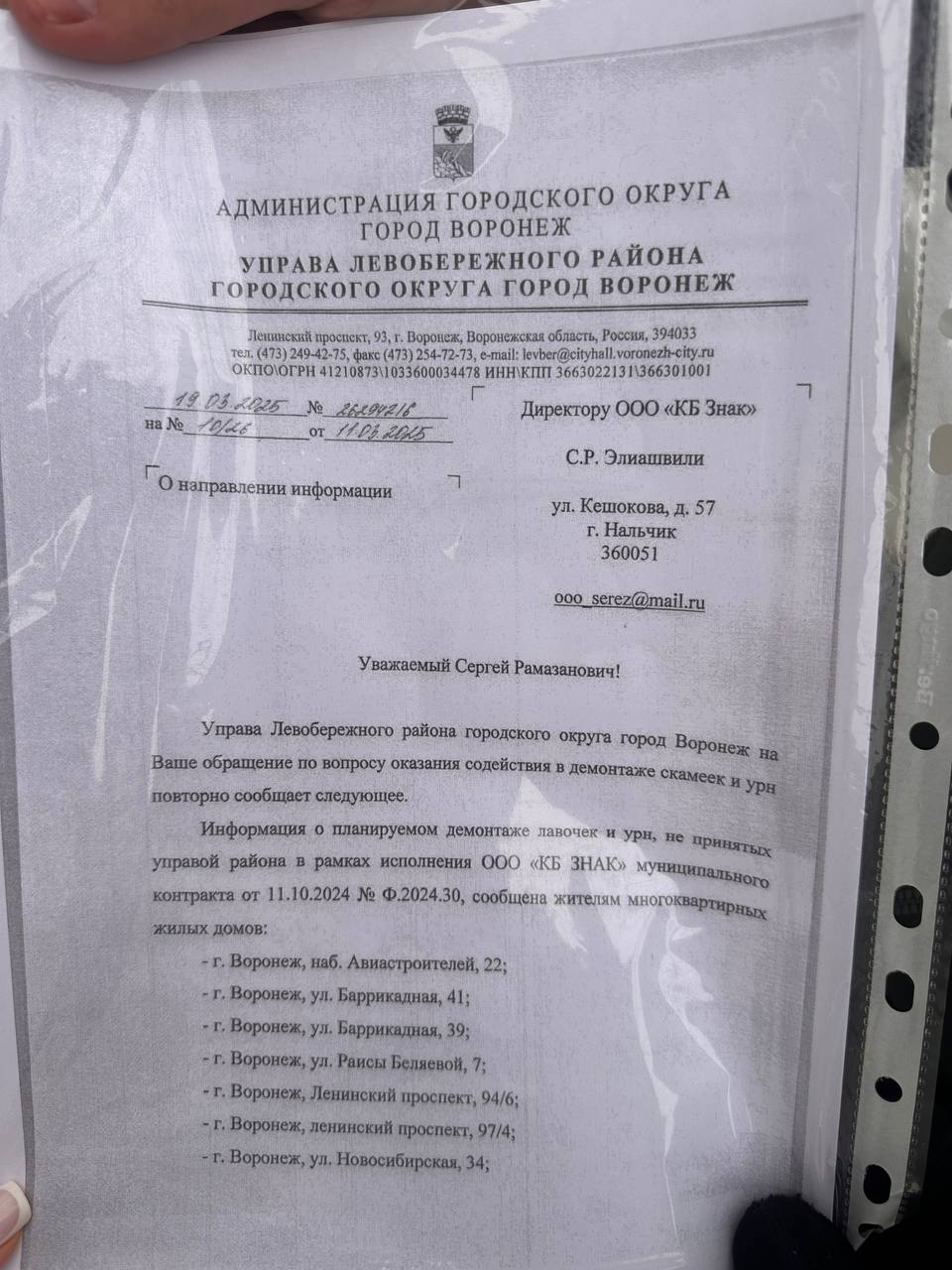Подрядчик дал – подрядчик взял: скандал из-за лавочек разгорелся в Воронеже