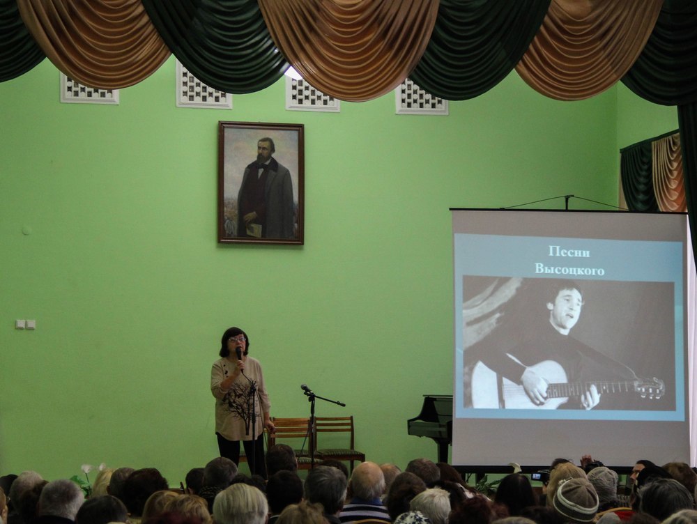 Лекционный зал библиотеки, который стал площадкой для празднования юбилейной даты, не смог вместить всех пришедших, люди толпились в проходе. Помимо представителей старшего поколения, услышать песни великого барда пришли молодые люди.
