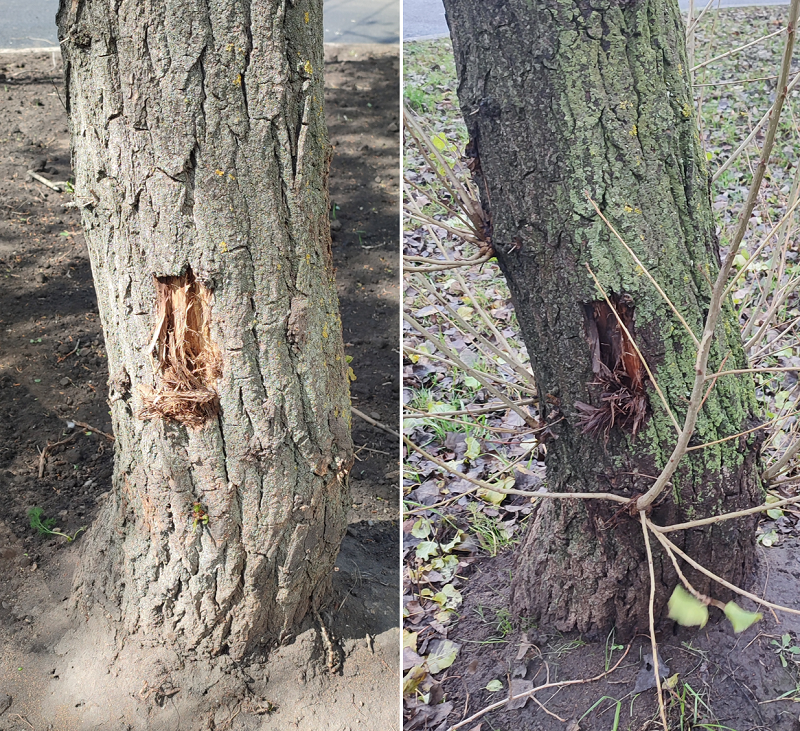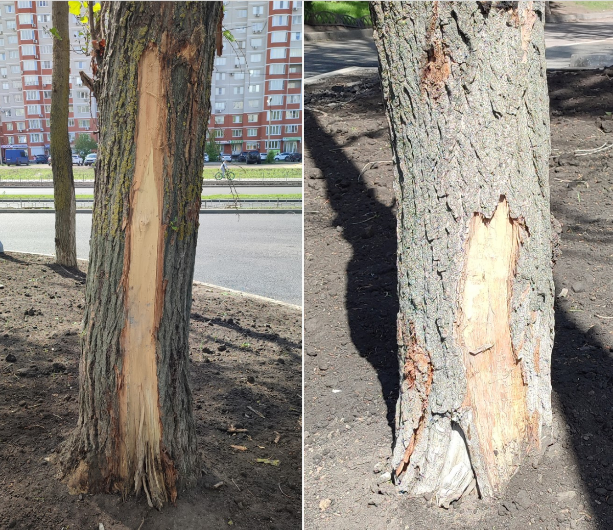 В целом мы видим, что никаких системных улучшений по сохранению зеленых насаждений в этом году не было, а с учетом новых масштабных работ по газонам – повреждение деревьев и кустарников приобрело невиданный ранее масштаб.