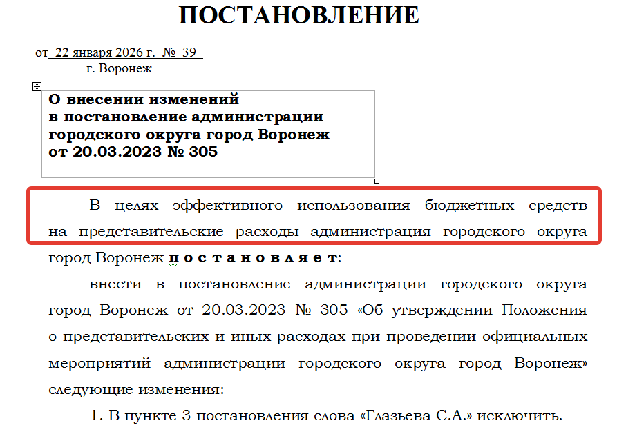 скриншот из постановления мэрии Воронежа