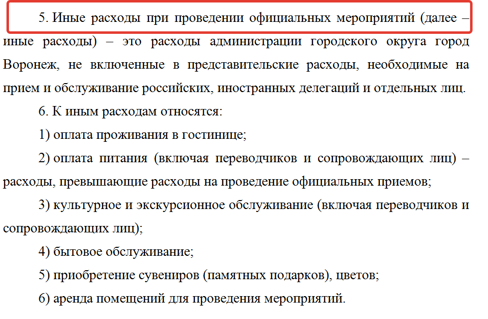 В документах мэрии представительские расходы расшифровываются следующим образом: