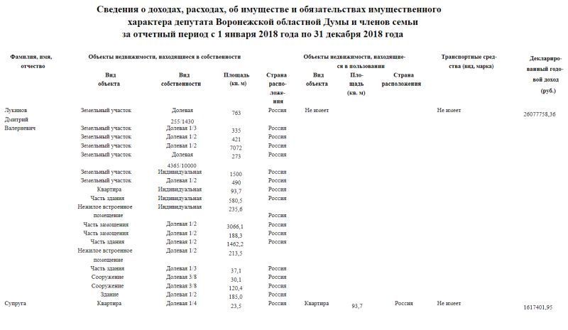 Сам Дмитрий Лукинов тоже из года в год идет к успеху. С 2015 по 2018 годы его ежегодный официальный доход вырос с 22 до 26 млн рублей. В собственности у него внушительный перечень земельных участков и прочего недвижимого имущества.