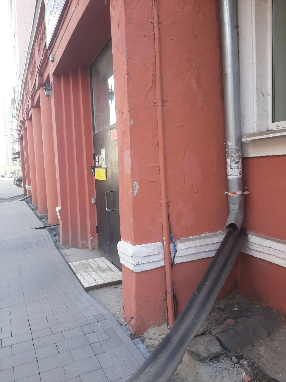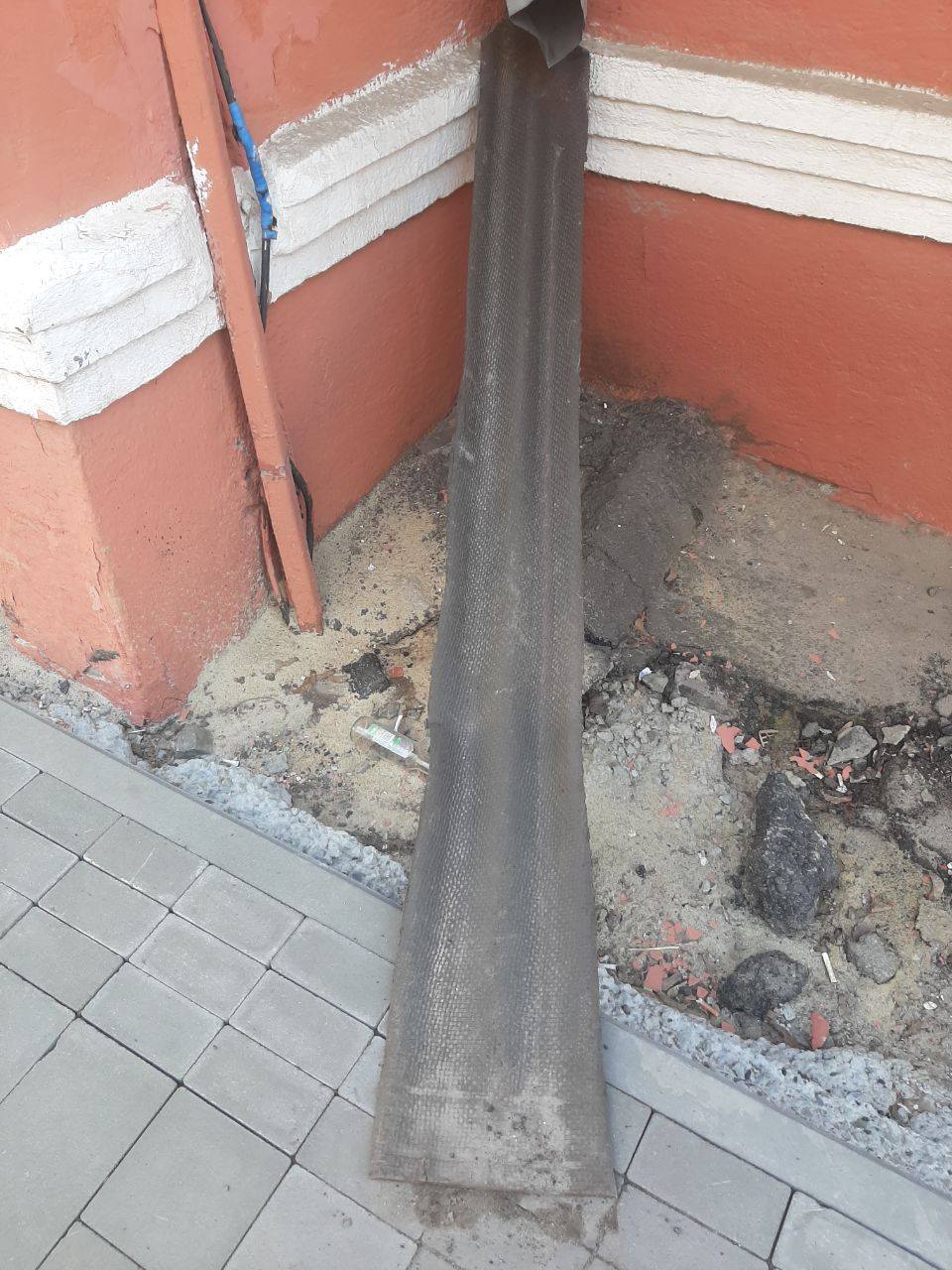 Если глядя на фото вас ничего не смущает, то поздравляю - вы те еще хитрюги. Кто-то из работников школы решил избежать подтопления здания во время дождей и увеличил ливневку, продлив ее до тротуара.