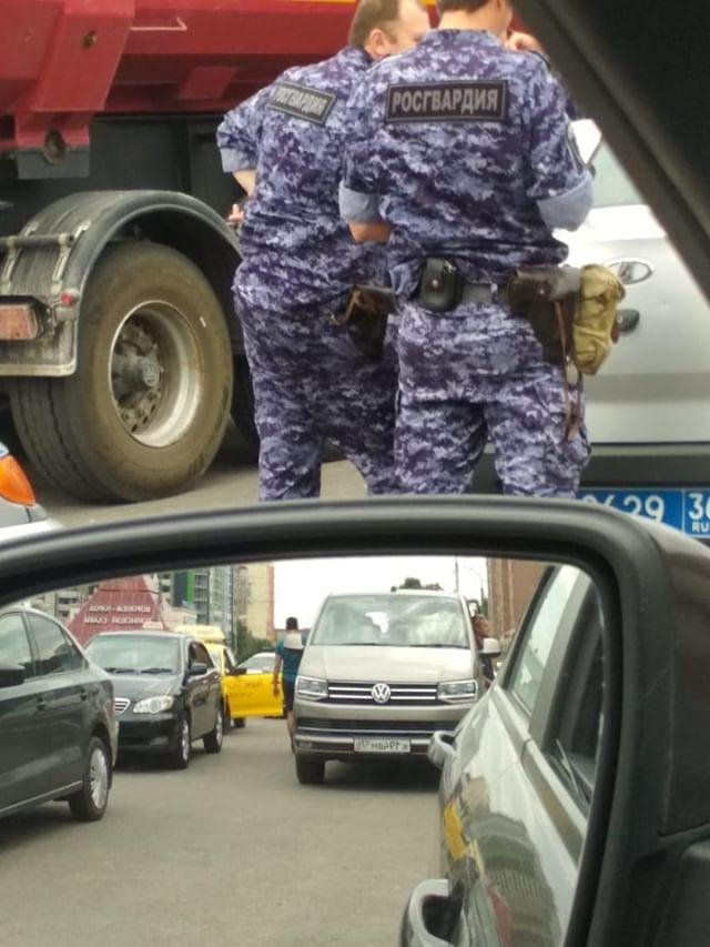 В районе памятника Славы в Воронеже сфотографировали возможную халатность правоохранителей. На одном из снимков видно, как сотрудники Росгвардии стоят у ведомственного автомобиля, а на втором запечатлена уже другая машина с открытой дверью, на переднем сиденье которой лежит предмет похожий на автомат.