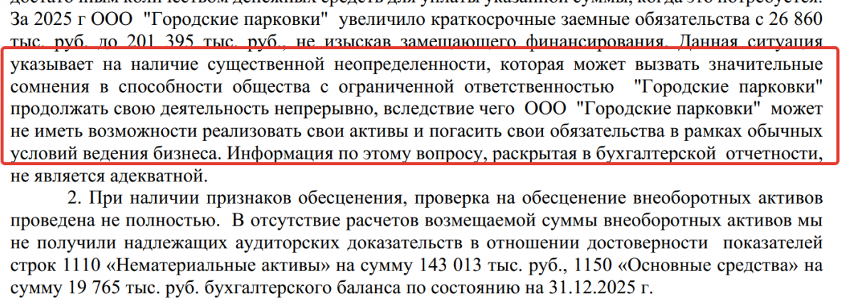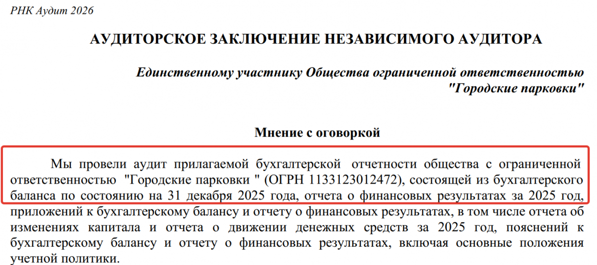 Что касается финансовой деятельности концессионера в 2025 году, то на днях аудиторская компания «РНК Аудит» завершила изучение документов ООО «Городские парковки», основной государственный регистрационный номер 1133123012472. В аудиторском заключении независимого аудитора в отношении воронежского концессионера, в частности, сказано: