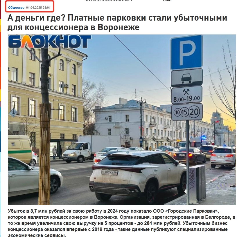 Остается добавить, что финансовая деятельность ООО «Городские парковки» при пополнении доходной части бюджета Воронежа практически и не видна. По данным мэрии, в 2024 году (последние данные) казна получила в качестве концессионной платы около 36 млн рублей, а доходная часть бюджета в 2025 году составила 55 млрд 200 млн рублей. То есть, доля ООО «Городские парковки», в качестве концессионной платы, в общих доходах городской казны могла тогда составлять менее 0,1 процента.