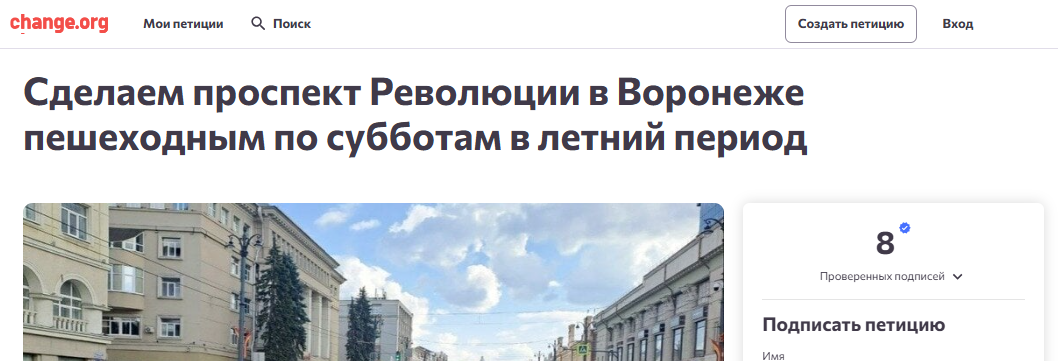 «Давайте вернем город людям! Пусть летние субботы на проспекте Революции станут визитной карточкой современного, гостеприимного и динамичного Воронежа», – завершает петицию воронежец.