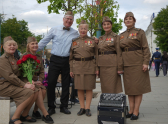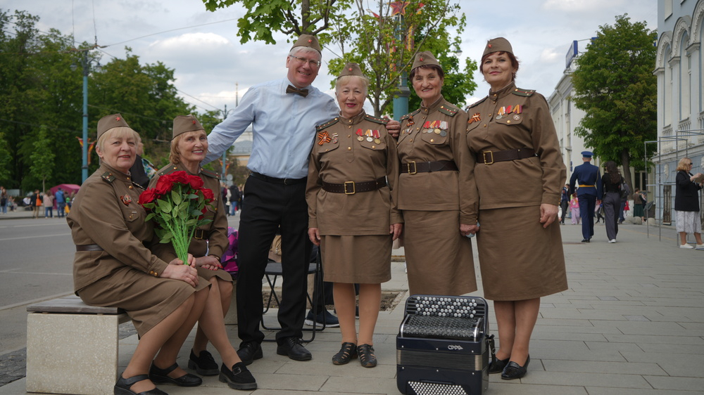 Несмотря на то, что акция «Бессмертный полк» в 2025 году проходила онлайн, многие воронежцы всё же пришли с портретами своих фронтовиков — как знак личной памяти. На улицах танцевали, пели, поздравляли ветеранов, дарили им цветы, а те немногие из них, кого можно было увидеть в толпе, становились центром внимания и благодарных улыбок.