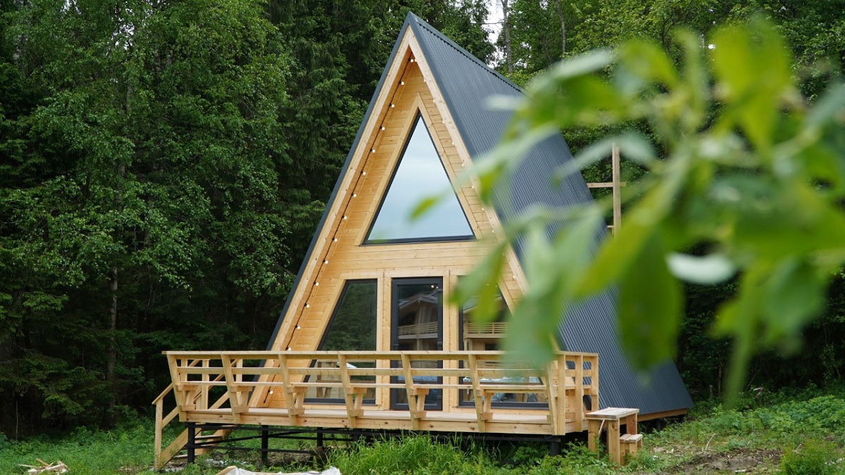 Дом A-frame* запросто можно поместить на маленький участок, а его небольшой вес сэкономит бюджет на фундаменте. В таком строении можно комфортно жить, а, при желании, даже неплохо на нем зарабатывать.