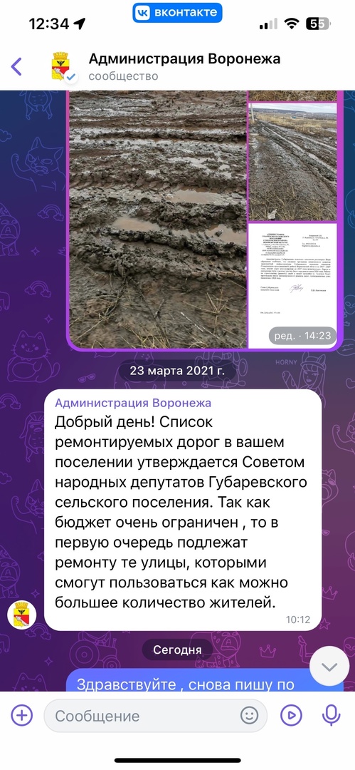 – Возможно нам чем-нибудь засыпать дорогу, например битый кирпич или дорожный срез? Улица почти вся застроена, мы жители сами чем смогли, тем засыпали. Сейчас снова весна, чернозем густой, на сегодня уже есть застрявшие соседи на улице, помогаем друг другу чем можем. Строиться и жить в мокрую грязную погоду невозможно и не реально, – обратилась читательница.