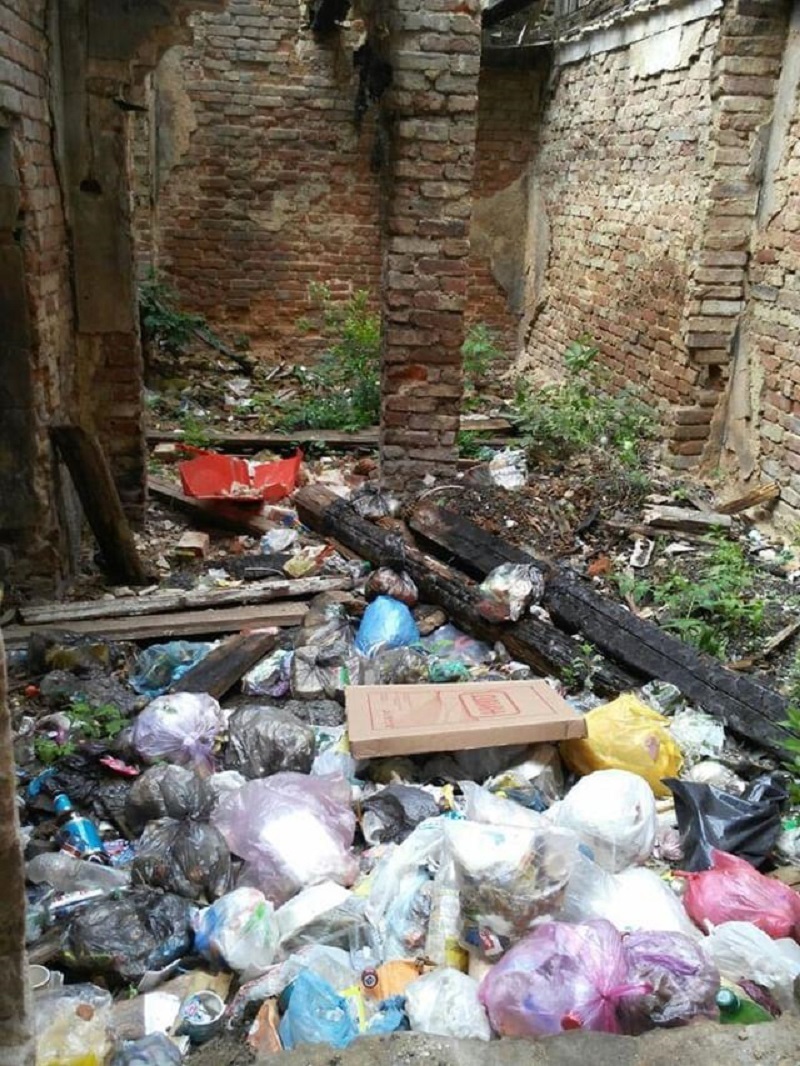 На данный момент состояние двора жилого дома отнюдь не самое лучшее. На кадрах, попавших в распоряжение нашей редакции, видно, что в старых развалинах валяются груды мусора, причем люди вместо того, чтобы донести мешок с отходами до контейнерных баков, предпочитают оставить свое "добро" в старых развалинах двора. Здесь же разбросаны стеклянные и пластиковые бутылки, фантики, использованная бумага, ветхий строительный мусор, жженые шпалы, коробки и многое другое.