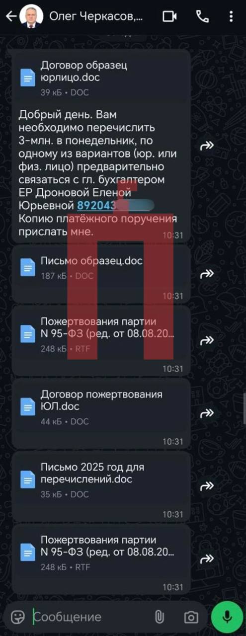 Можно было бы подумать, что это фейк, но зампред Воргордумы подтвердил в разговоре с журналистами, что сообщения уходили с его телефона. Он пояснил, что по три миллиона собирали на поддержку партии, в том числе информационную.