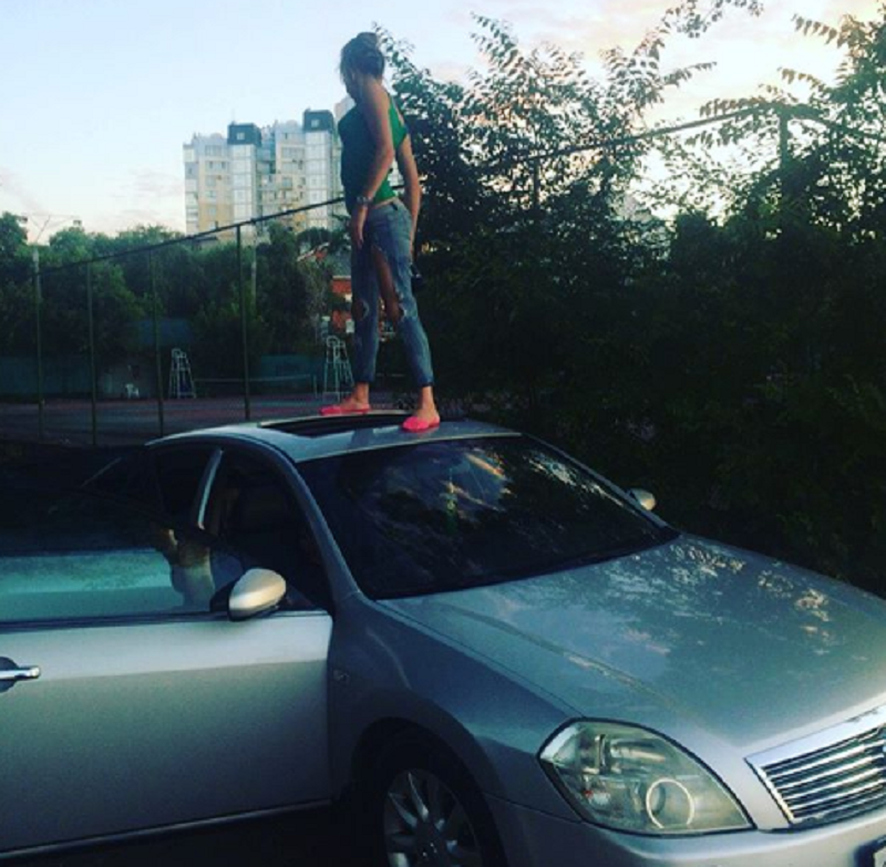 Танцы на крыше Nissan Teana устроила девушка с вином в Воронеже