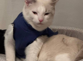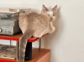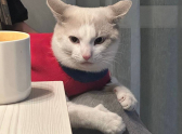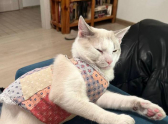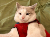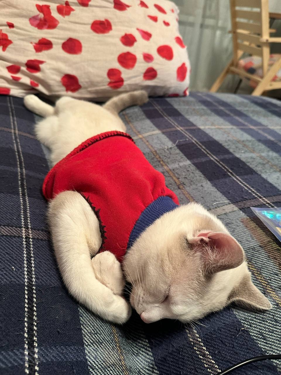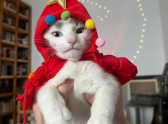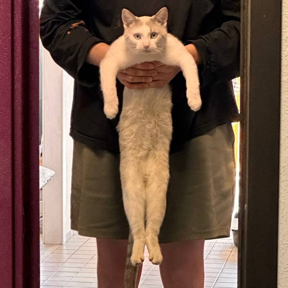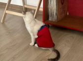 А здесь случился небольшой кошачий гардеробный fail. Костюмчик сполз, превратившись в стильную юбку. Главное — держать марку и не подавать виду, что что-то не так.