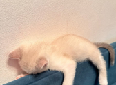 Это фото — идеальное воплощение состояния, когда силы на исходе и мир слишком сложен. Маленький Пряник заснул, уткнувшись мордочкой в щель. Кажется, он все понимает...