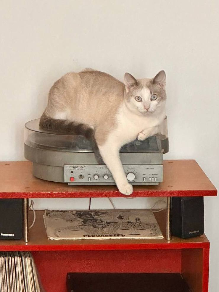 А вот и доказательство, что Пряник — кот с тонким вкусом. Он устроился на виниловом проигрывателе, аккуратно положив лапку на кнопку звука. Поэтому, если кто-то пожалуется на громкую музыку, он просто сделает немножечко потише...